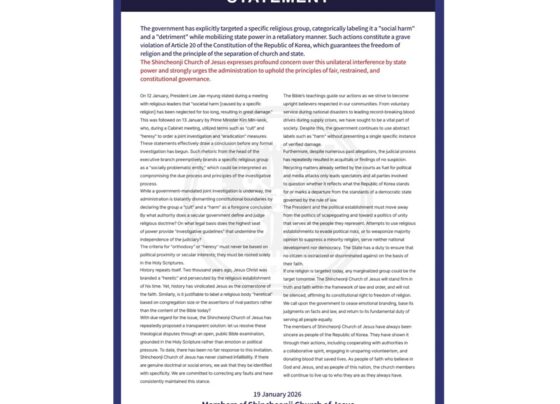 Violation of Religious Freedom: Korean Government Under Fire Over Interference in Church Affairs.